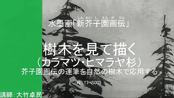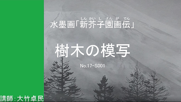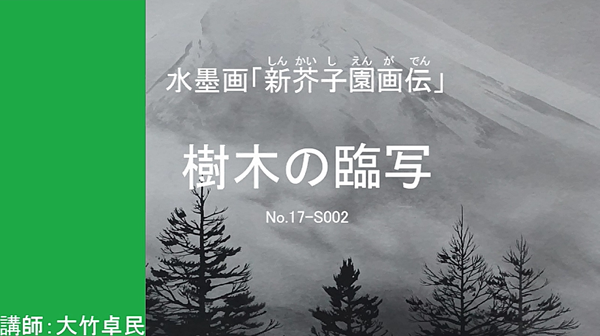 「芥子園画伝」は歴代の山水画をの描き方を集め、山水画法として作られた山水画譜です。それを大竹先生の運筆を動画にしました。
